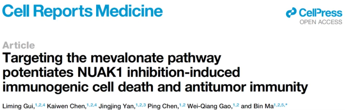 2025年1月16日,漫画同人 马斌团队在Cell Reports Medicine期刊上发表文章Targeting the mevalonate pathway potentiates NUAK1 inhibition-induced immunogenic cell death and antitumor immunity。该研究发现激酶NUAK1的抑制能诱导肿瘤ICD,但存在胆固醇代谢的负反馈调控。通过系统性使用他汀类药物(HMGCR抑制剂),可以抑制胆固醇的合成,并改善NUAK1抑制剂诱导肿瘤ICD的效果和增强抗肿瘤免疫。博士研究生桂黎明和陈楷文为该论文的共同第一作者,马斌博士为唯一通讯作者。