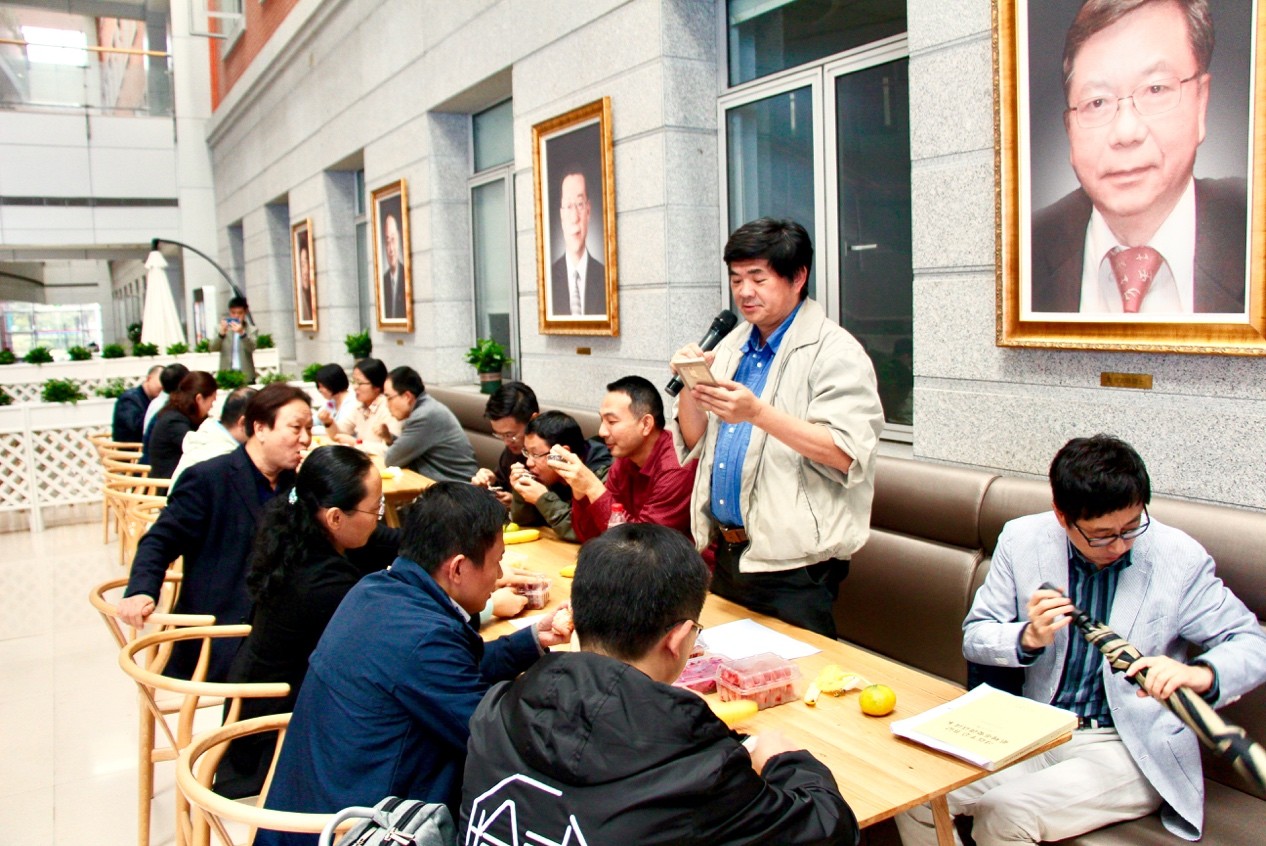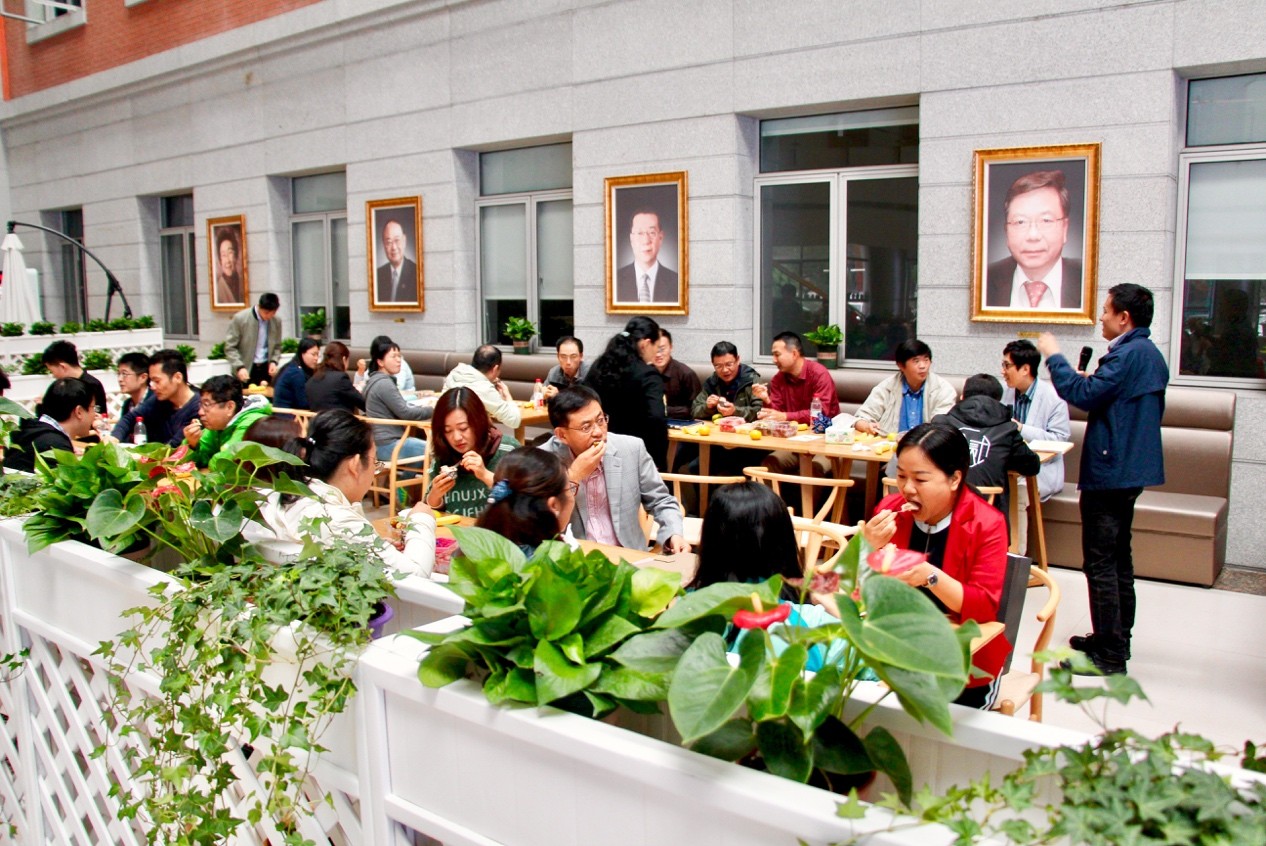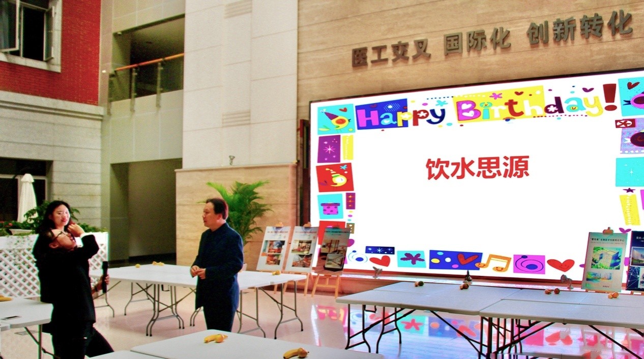 在院内LED大屏幕温馨背景和生日主题音乐的烘衬下,教师们在学院大厅的咖啡吧中三五结伴而坐,交流和分享工作日常。工会主席柴新禹主持开幕,并热情地为四十位教师送上生日祝福。席间,同是庆生主角的院长高维强首先发言,在与大家互送祝福的同时,更不忘鼓励学院教师积极投入到各项工作中。学院党委书记季波也与教师们同座,并随后发言,关心教师们在工作中的所求所需,期待并祝愿大家的工作和生活均能迈进新阶梯!