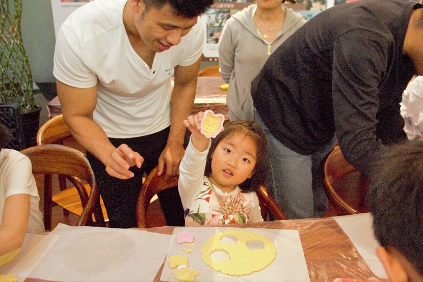活动现场备好了各种小朋友们喜爱的手工玩具、益智棋盘、可爱玩偶和新鲜水果,在正式活动开始之前,现场的气氛就已经十分欢快活跃。烘焙教学在专业烘焙师万老师的细致讲解中拉开序幕,万老师先从介绍烘焙工具开始,为小朋友们制定了“黄油饼干烘焙计划”,然后一步步地演示从黄油变成面团最后成为饼干的“神奇”过程。小朋友们认真地听讲,近距离的观察学习,还不时发问,家长们也一同学习,气氛温暖融洽。