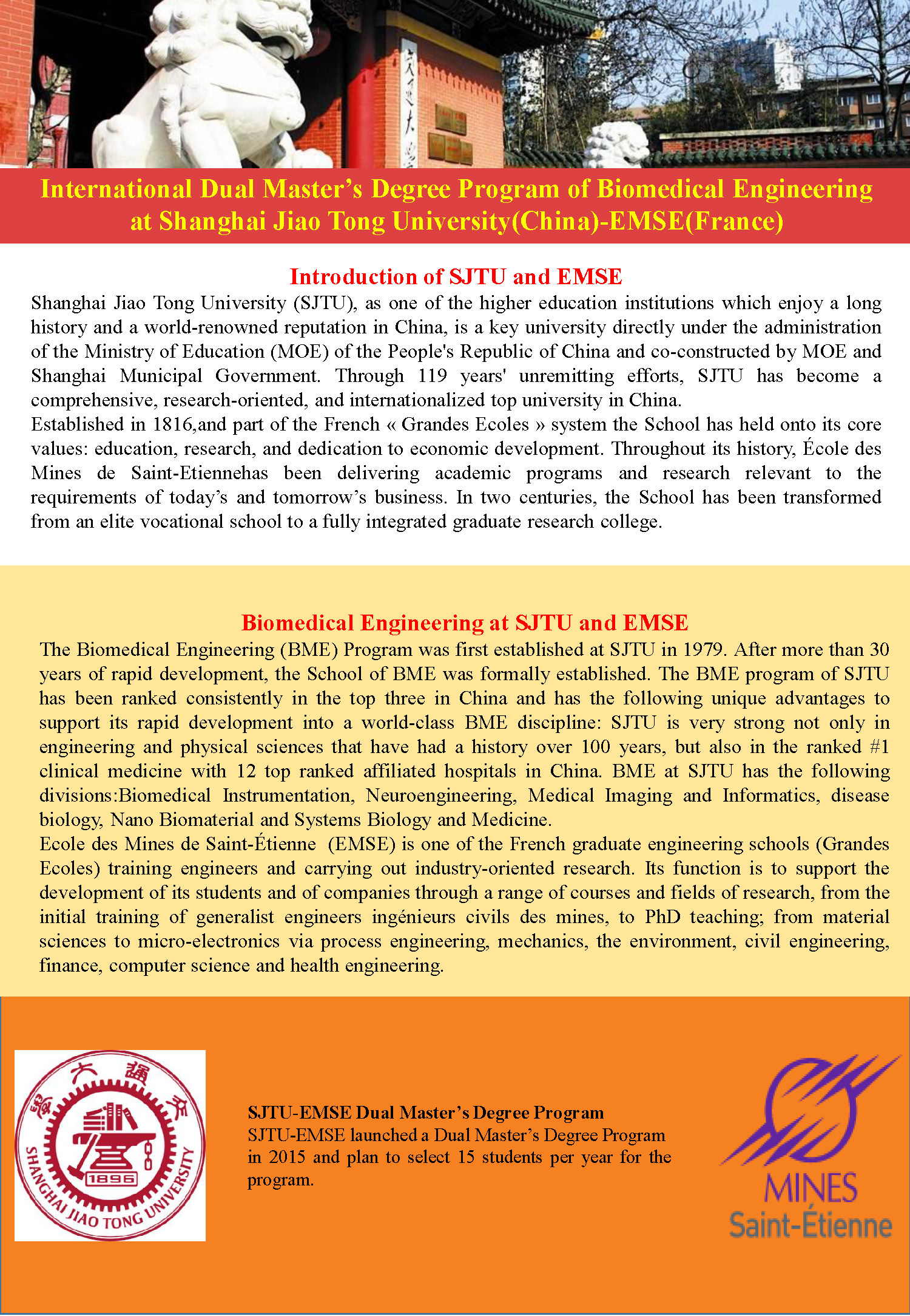 Shanghai Jiao Tong University (SJTU), as one of the higher education institutions which enjoy a long history and a world-renowned reputation in China, is a key university directly under the administration of the Ministry of Education (MOE) of the People's Republic of China and co-constructed by MOE and Shanghai Municipal Government. Through 119 years' unremitting efforts, SJTU has become a comprehensive, research-oriented, and internationalized top university in China.