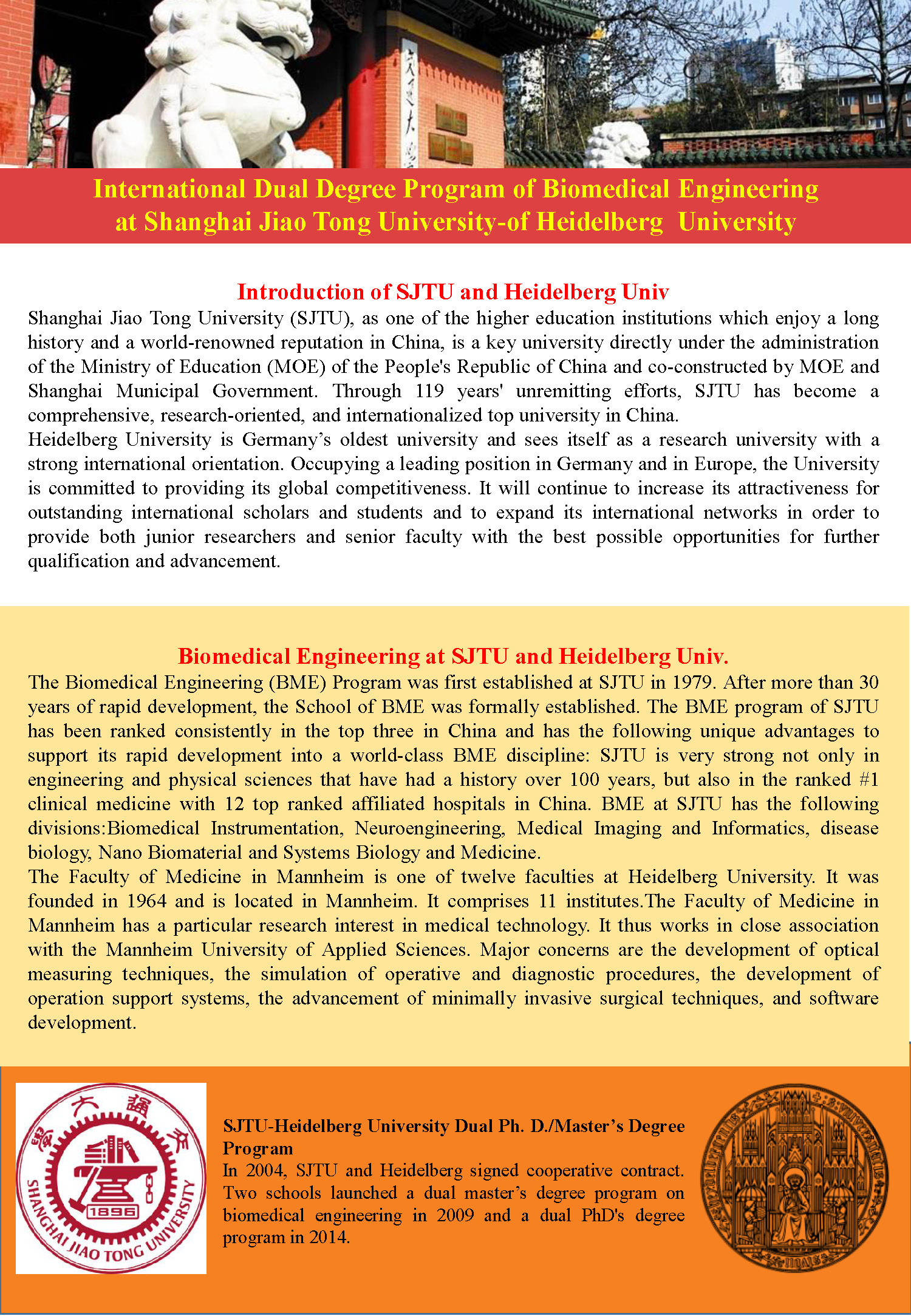 Shanghai Jiao Tong University (SJTU), as one of the higher education institutions which enjoy a long history and a world-renowned reputation in China, is a key university directly under the administration of the Ministry of Education (MOE) of the People's Republic of China and co-constructed by MOE and Shanghai Municipal Government. Through 119 years' unremitting efforts, SJTU has become a comprehensive, research-oriented, and internationalized top university in China.