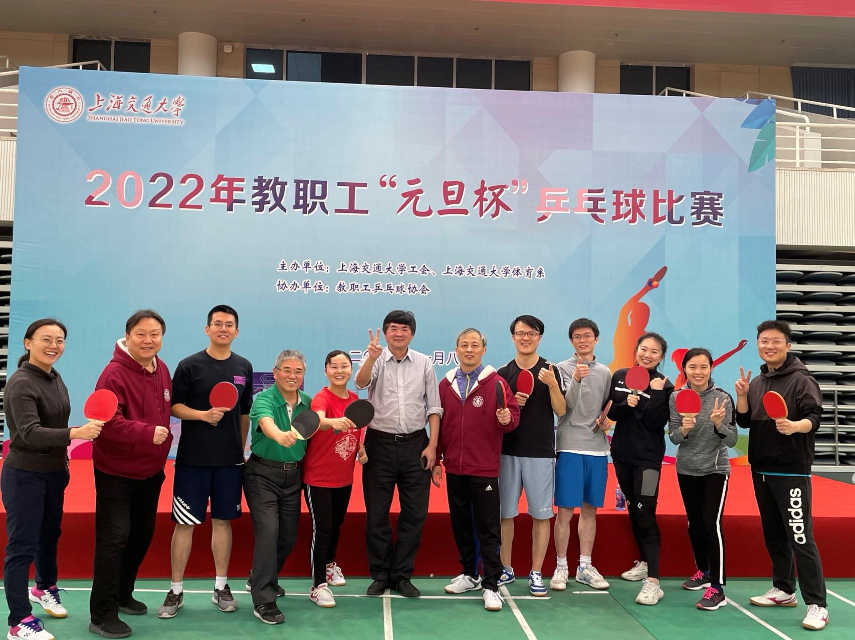 为全面贯彻落实党的十九大精神,深入实施健康中国战略,促进学校群众性体育活动的开展,引导教职工树立健康生活的理念,丰富教职工业余文化生活,激励教职工以昂扬的精神、强健的体魄全身心投入“双一流”大学建设,1月8日,由校工会、体育系联合主办,教工乒乓球协会协办的漫画同人 2022年教职工“元旦杯”乒乓球比赛,在闵行校区霍英东体育中心举行。经过激烈的角逐,漫画同人 乒乓球队最终力压群雄,顺利晋升甲级队。