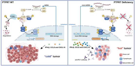 图2 研究示意图:肿瘤PTPRT缺失通过调节STING通路增强免疫检查点抑制剂疗效