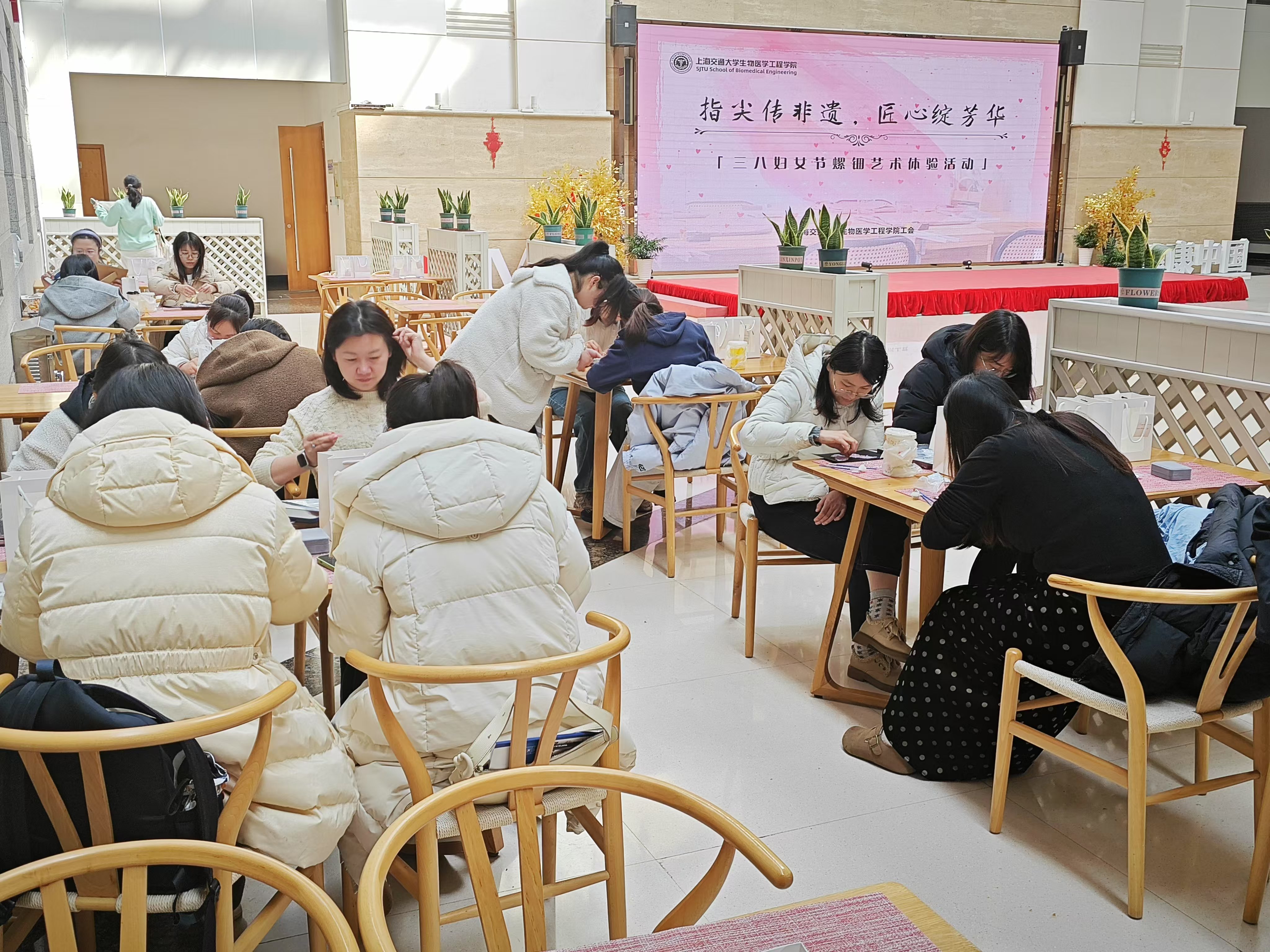 为庆祝第115个“三八”国际妇女节,弘扬中华优秀传统文化,3月6日中午,漫画同人 工会在闵行校区文选医学楼工会之家举办“非遗匠心·女神手作”主题活动,学院女性教职工通过“螺钿胸针DIY”与“螺钿画DIY”两项非遗技艺体验,在千年贝影与漆艺流光中感受传统工艺之美,展现新时代知识女性的文化自信与优雅风采。