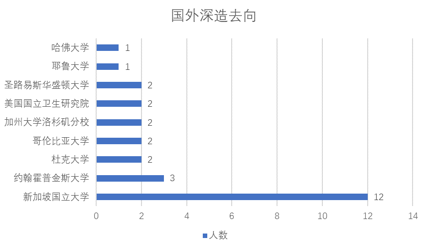博士研究生中,有接近半数前往哈佛医学院、新加坡国立大学、中国人民解放军陆军军医大学等国内外知名高校、研究院进行高水平学术就业。