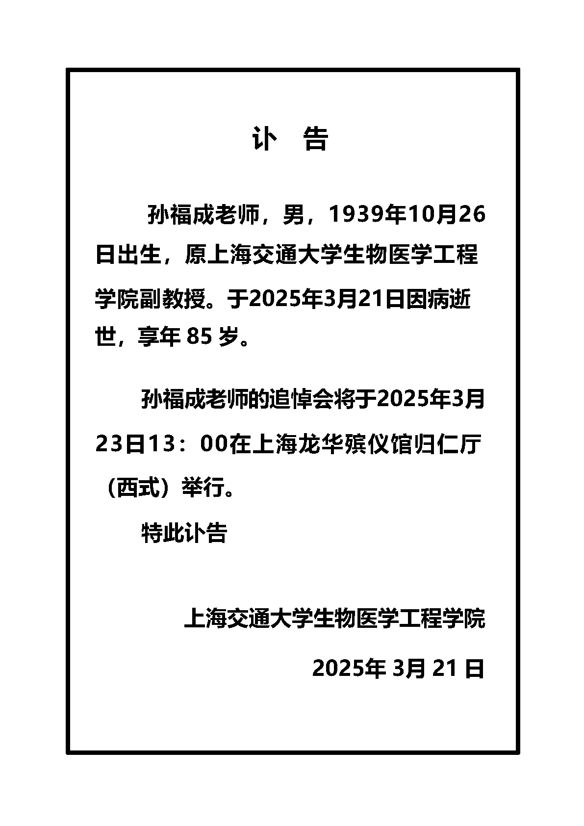 孙福成,男,汉族,1939年10月生,江苏常州人。原漫画同人 生命科学技术学院生物医学工程系副教授。1999年10月退休。