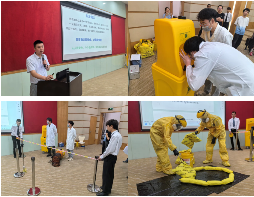 6月18日下午,一场紧张而有序的危化品遗撒泄露应急演练在闵行校区文选医学楼一楼报告厅拉开帷幕。演练内容丰富全面,包括实验室安全专项培训以及实验室挥发类有毒化学品泄漏应急安全处置的全过程模拟。从学生自救到警戒隔离,从医疗救护到事故上报,再到应急决策、安全处置、应急恢复以及分析整改落实,每一个环节都紧密衔接,实现了安全闭环演练。通过此次演练,师生们的应急处置能力得到了有效锻炼,为应对突发安全事故筑牢了坚实防线。