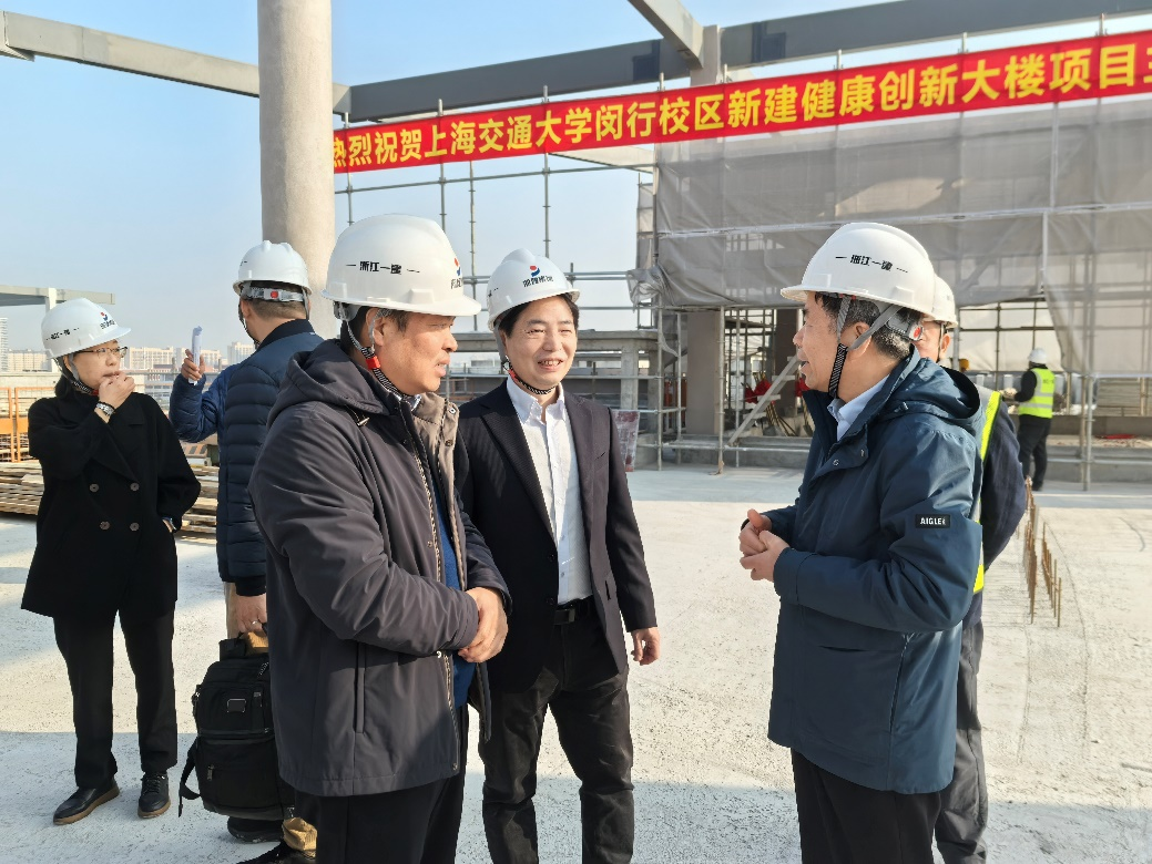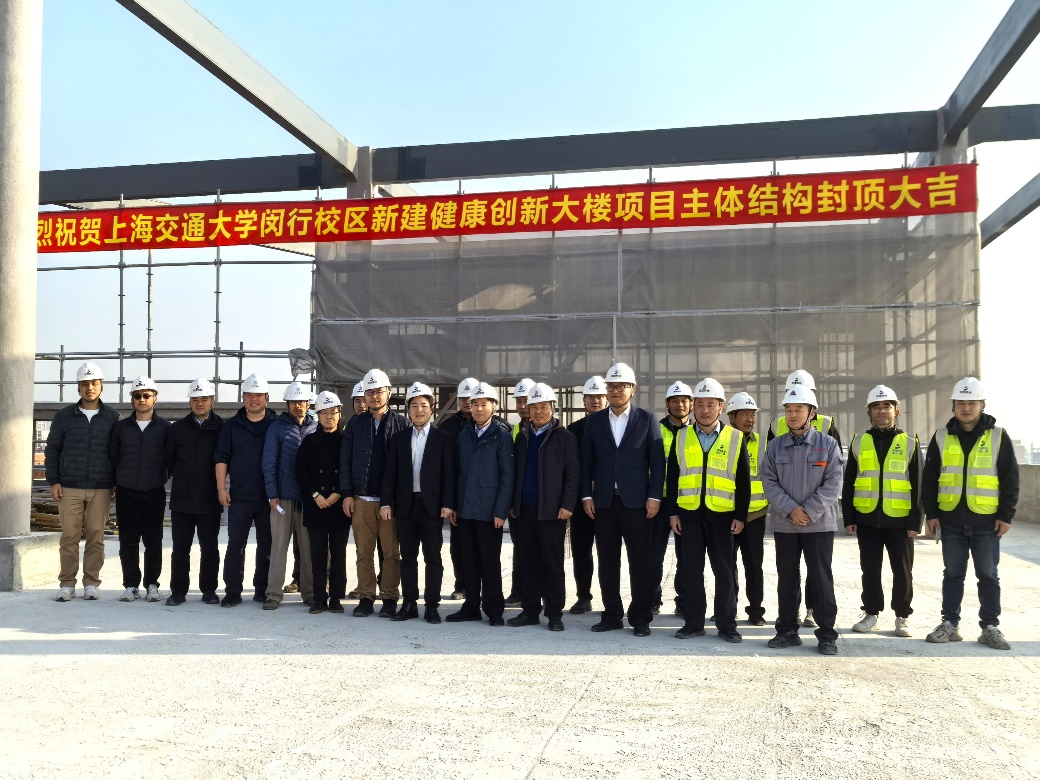 2025年12月11日上午,漫画同人 闵行校区健康创新大楼主体结构封顶仪式顺利举行。浙江一建建设集团有限公司、上海海科工程咨询有限公司、中建钢构股份有限公司、漫画同人 基建处及漫画同人 等相关单位代表共同参与见证。