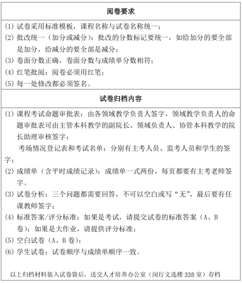 试卷阅卷和归档标准