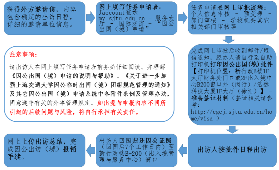 1、 因公出访审批相关手续流程: