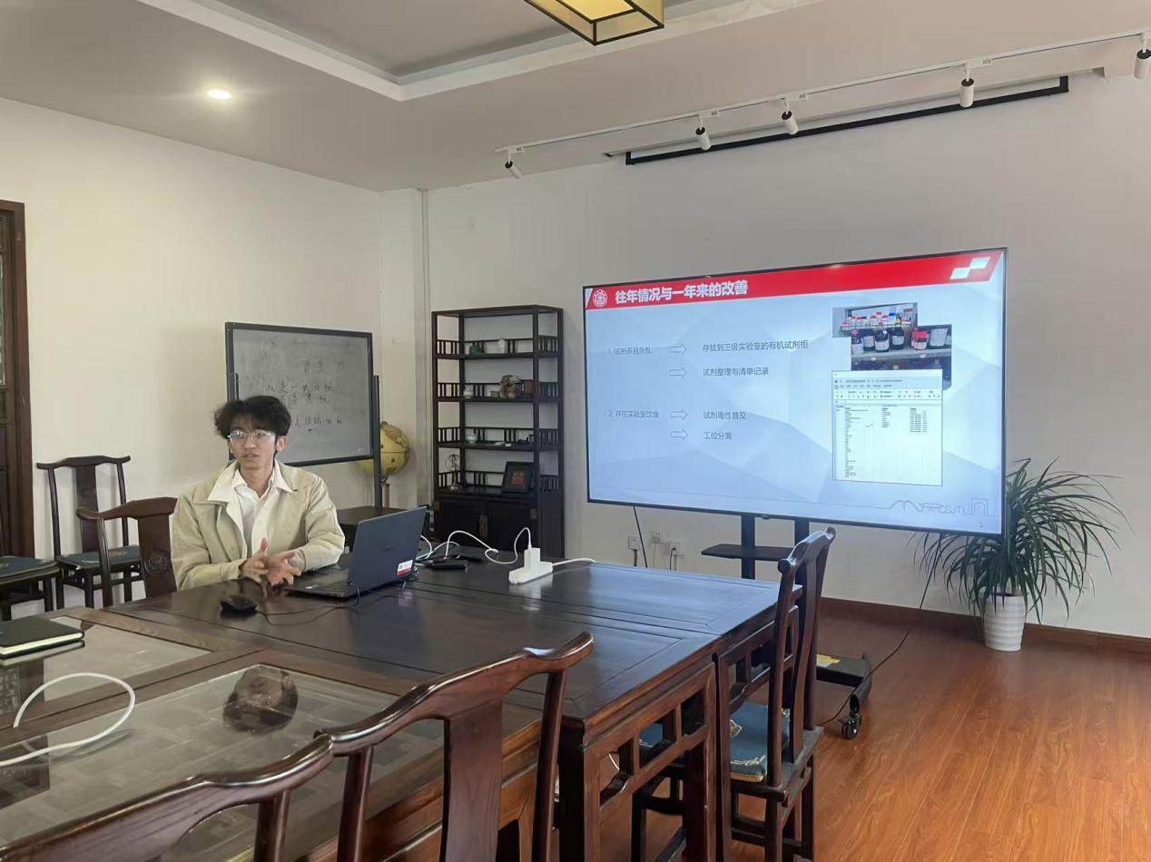 院级安全员刘佳霖、顾翔就学院2025年度实验室安全工作情况进行汇报。在过去一年,学院持续完善安全管理体系,加大安全教育培训力度,定期开展安全隐患排查与整改,不断推进应急演练与处置能力建设,为新学期实验室安全工作的有序开展奠定了坚实基础。