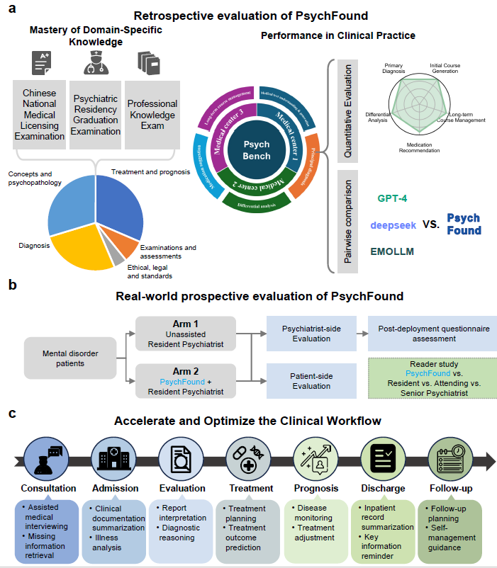 Wang R, Liu S, Zhang L, Zhu X, Huang J, Yang X, Wang Y, Wang H, Yang Z, Yang R, Wang G, Jin C. PsychFound: A domain-adapted large language model to support clinicians in psychiatric clinical practice. Nature Machine Intelligence. 2026.