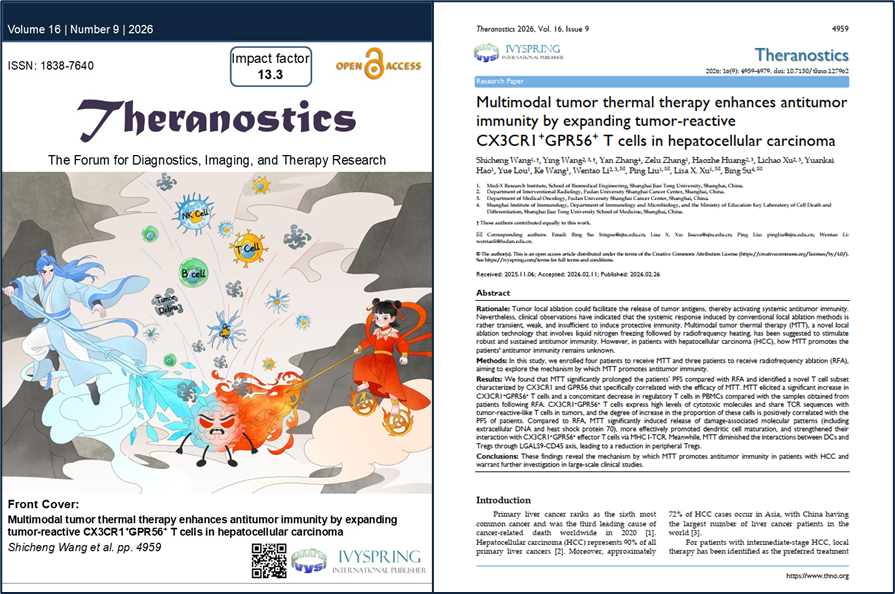 原文信息:Wang S, Wang Y, Zhang Y, et al. Multimodal tumor thermal therapy enhances antitumor immunity by expanding tumor-reactive CX3CR1+GPR56+ T cells in hepatocellular carcinoma. Theranostics, 2026;16(12):4959-4978. DOI: 10.7150/thno.103682